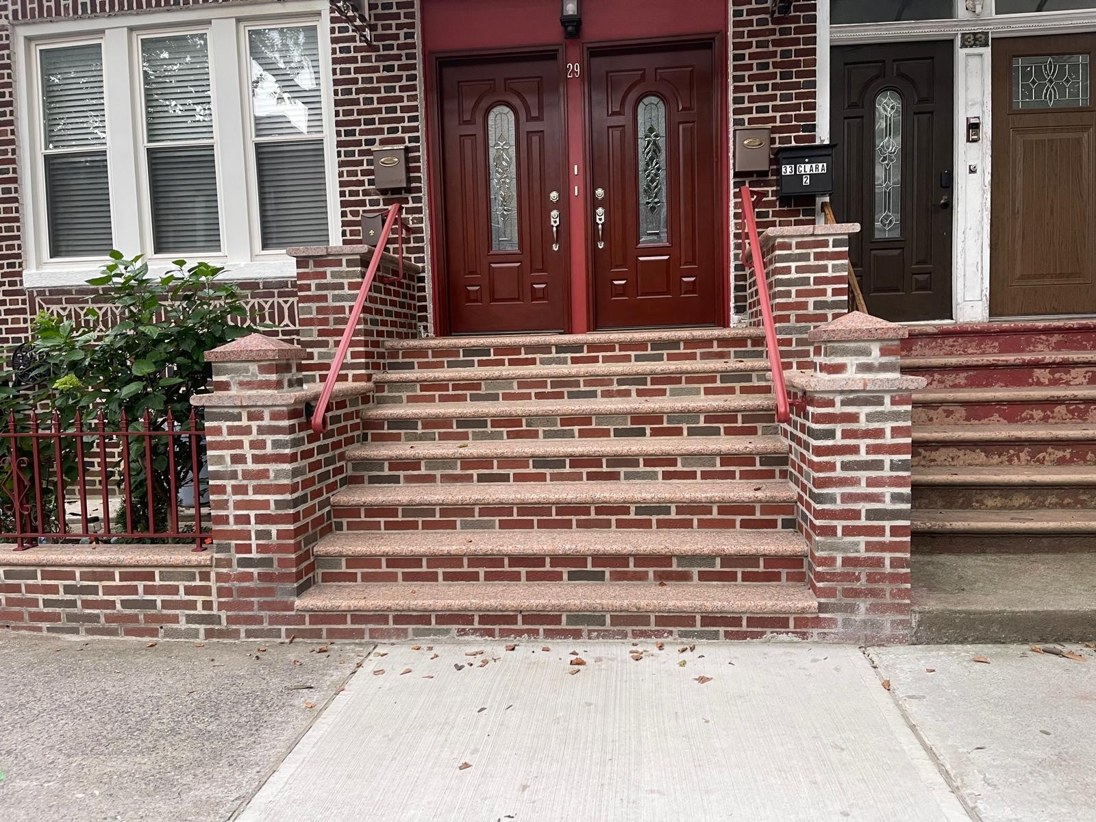 Font step and porch area replacement old step, apply new step and porch area with brick & stone.